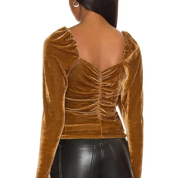 BB Dakota Ruched Front Velvet Top - Bronze