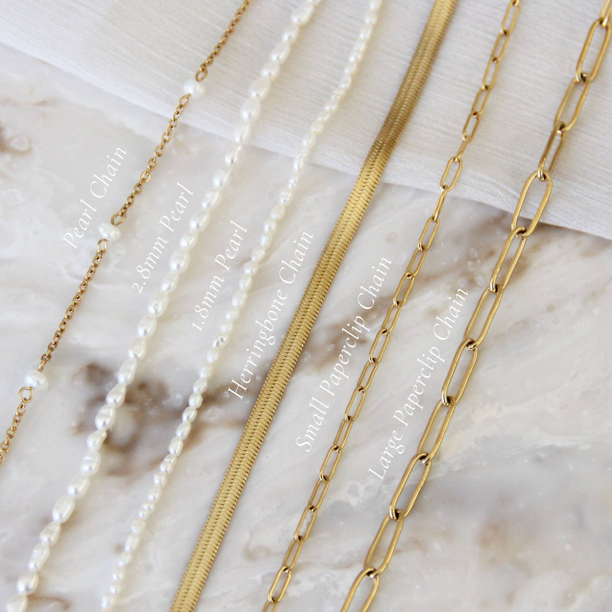Pearl Chain: 6.25" + 1.5" extender. Lengthens up to 7.75"