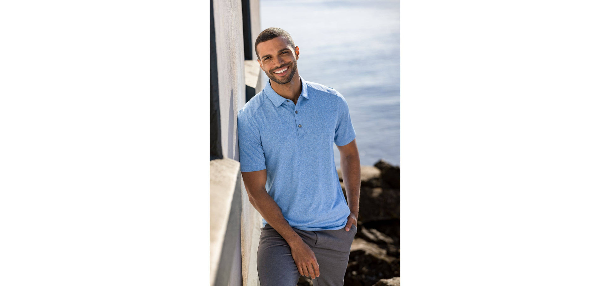 The iconic short sleeve Forge Eco Recycled Polo is engineered with 4-way stretch for exceptional versatility, designed to be your favorite sustainable super soft men's short sleeve polo shirt for golf, the clubhouse, the office, travel, work from home, or wherever adventure takes you. Supremely soft and stretchy with a modern clean look, the moisture wicking, high quality Forge Eco polo is a perfect blend of UPF sun protection certified eco-friendly polyester and spandex, resulting in the most versatile, sustainable and comfortable polo for you and the planet.