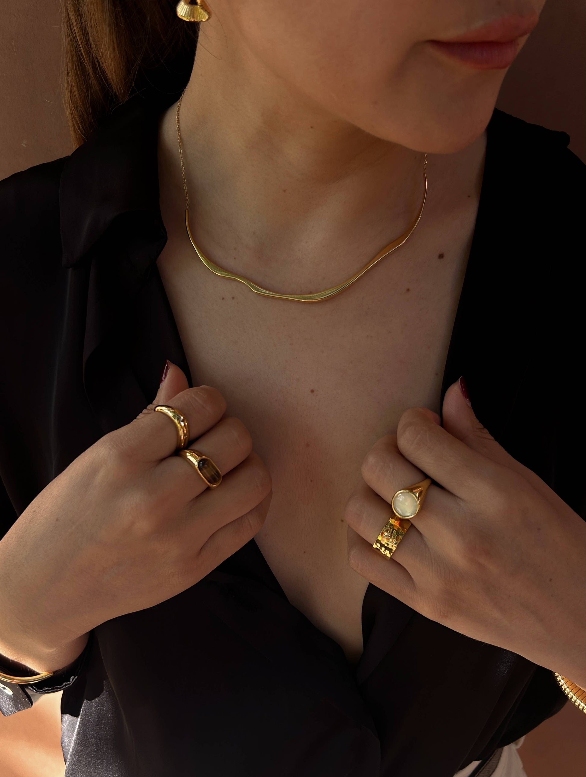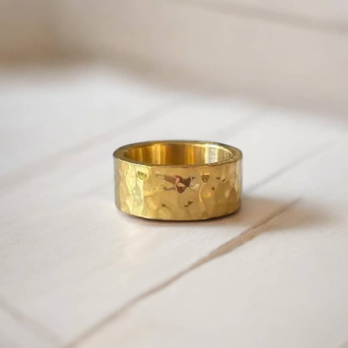 Make a bold statement in our gold hammered Harper Ring. A timeless statement piece that fuses texture and refinement.
