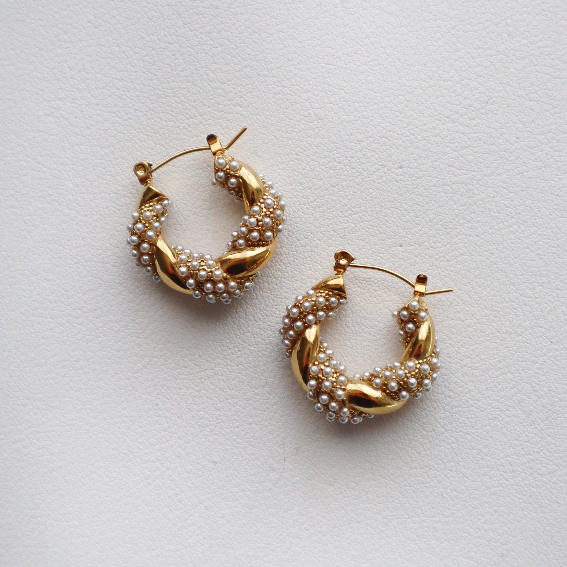 - Pearl twisted hoops