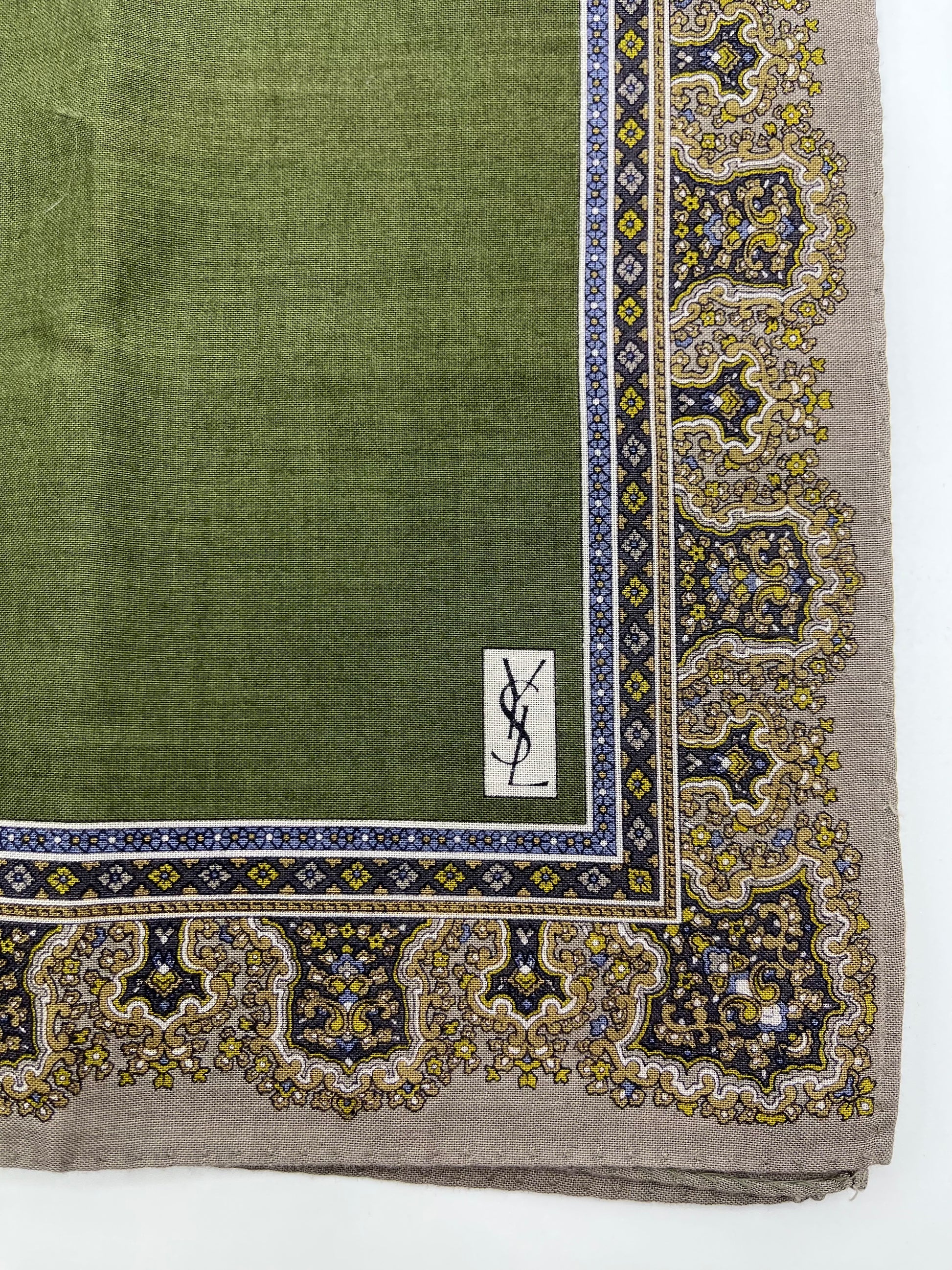 *Pre-Loved* 19x19 YSL Border Scarf - Olive/Brn
