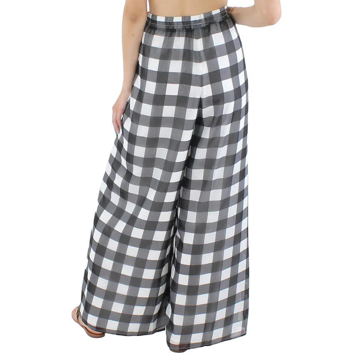 Riley & Rae Chiffon Check Print Wide Leg Pant - Blk/Wht