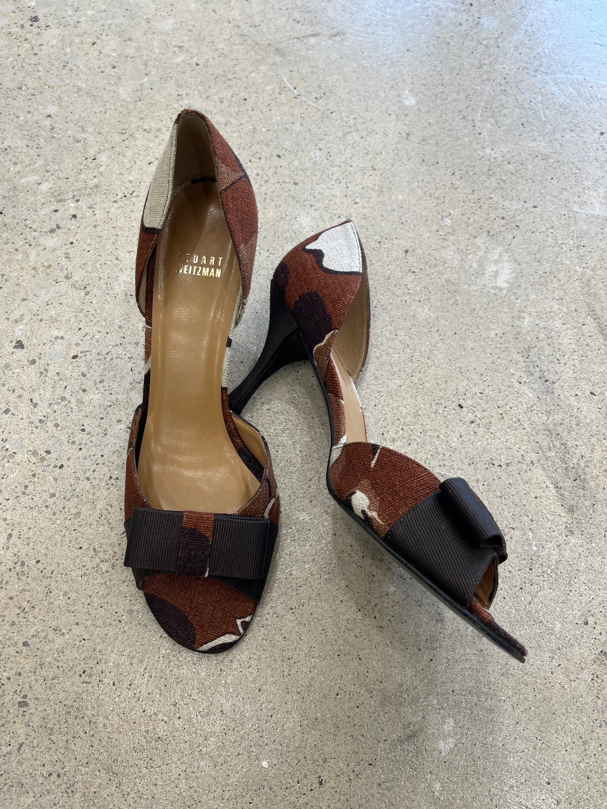 Stuart Weitzman Patterned Open Toe Heels - Brn 9.5