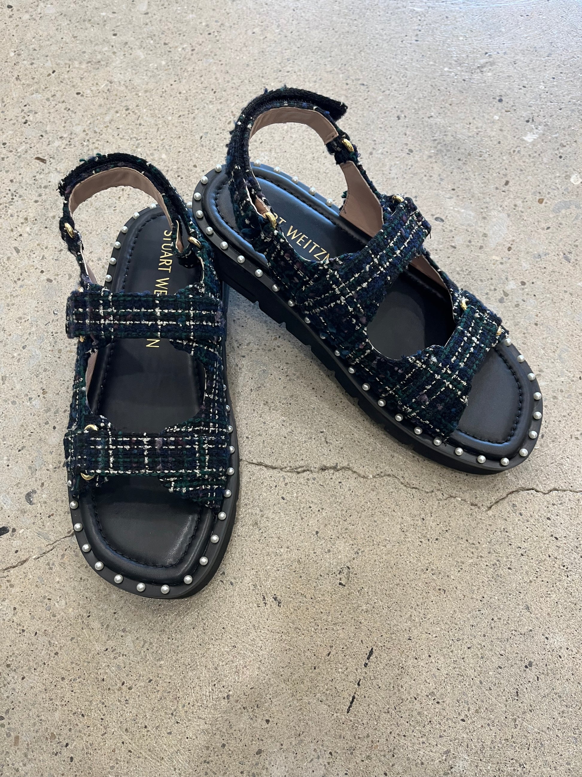 Stuart Weitzman Zoe Lift Sandal - Black/Grn Tweed 10